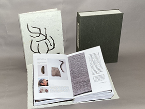 Lu Jingren, world renown book designer in Beijing China teamed up with Amanda in Minneapolis to create Handmade Path. Their idea was to invite people to answer the same six questions using their handwriting because it connects the hand the mind and the heart in an intimate way . The questions included how did you begin your practice? Why do you still make paper/books? What is the difference between reading on a digital device or in a book? In what way do you understand the five senses of paper/book: vision, touch, hearing, smelling, and tasting? Share with us some moments, either breakthroughs or break downs in your work? What is your next dream project?